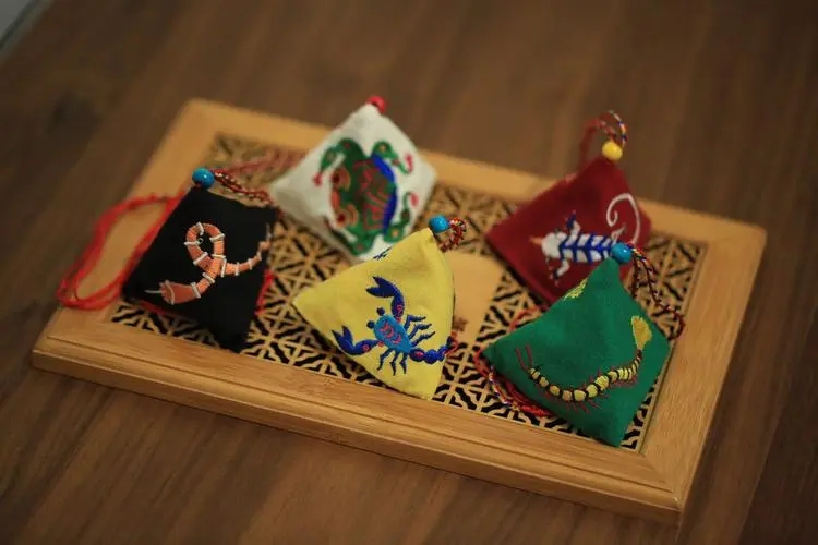 在端午节期间,人们还会佩香囊来驱邪避疫。香囊是用各种中草药制成的,具有独特的香味和药用价值。在躲端午的习俗中,人们会在家中制作香囊,以驱赶五毒和其他害虫。同时,人们还会将香囊佩戴在身上或放在家中,以祈求平安和健康。